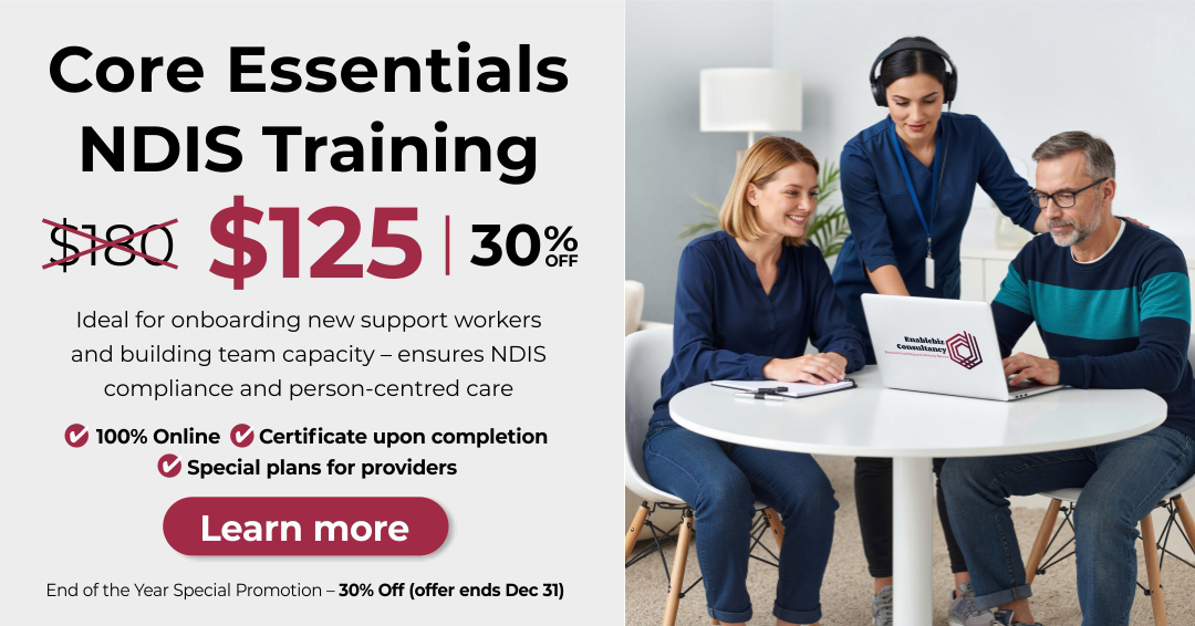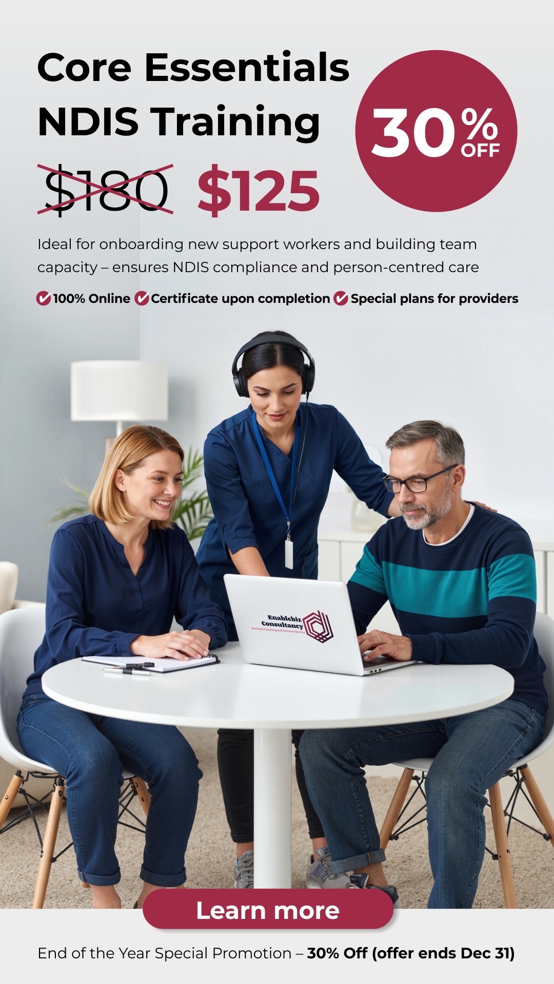 Whether you’re an NDIS provider looking to upskill your staff or an individual ready to grow your knowledge and confidence, Enablebiz Consultancy delivers flexible, expert-led training built for the real world of disability support.